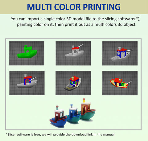 - Hotend type: 4-IN-1-OUT non-mix color hotend